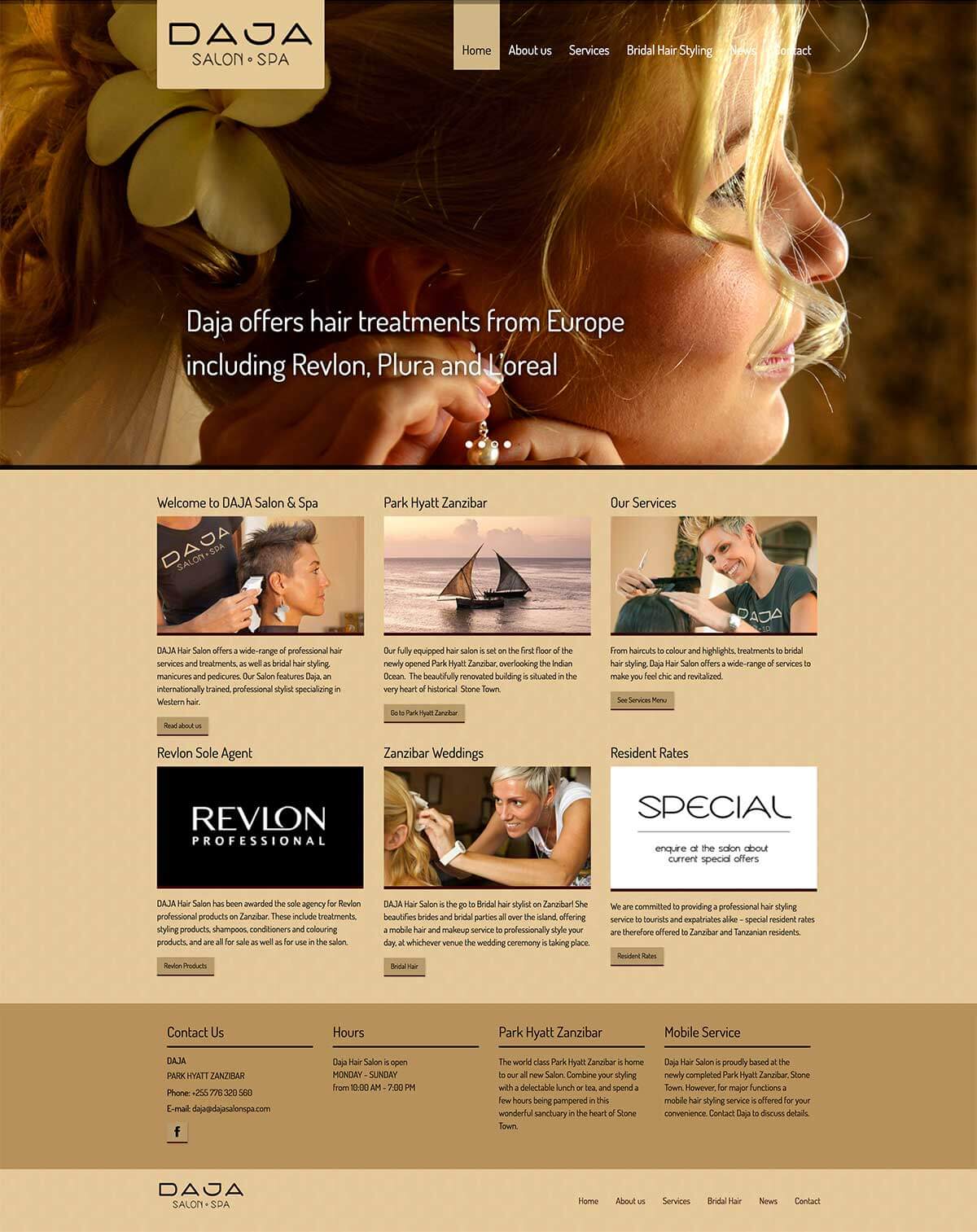 Website design and development with photography for a hair salon and spa in the Park Hyatt hotel.
