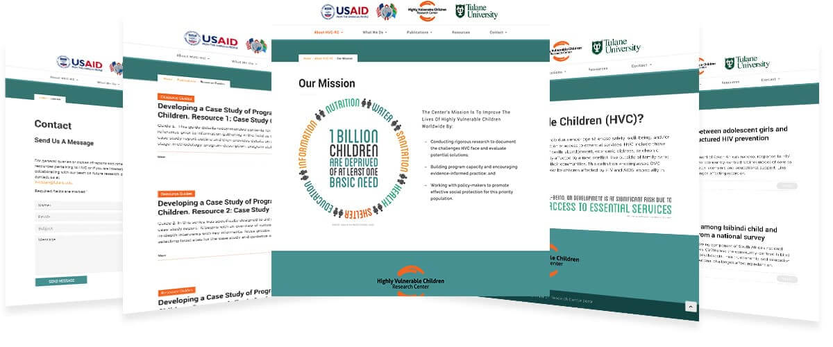 Creativeness blended with stringent procedures for the design and development for Tulane University’s Highly Vulnerable Research Centre website to catalog all of their research.